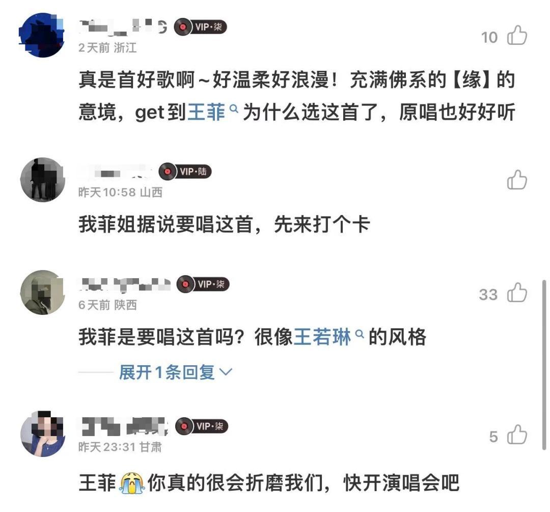 在王菲将翻唱此曲的春晚消息传出前,歌曲评论区仅有零星几条评论。消息传出后一周内,网易云音乐评论数已突破999+。大量“菲迷”前往打卡。另外,歌曲收藏破1W+。